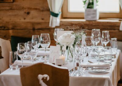 Für eine große Hochzeit eignen sich Hütten, die bereits Erfahrung mit Hochzeiten haben und auch die notwendige Infrastruktur zur Verfügung stellen können. Ausreichend Platz und Personal machen nicht nur die Planung einfacher, sondern garantieren auch einen stressfreien Tag. So schön es sein mag, auf der Terrasse einer Alm zu heiraten, sollte man auch einen Plan B für Schlechtwetter parat haben und mit diesem Plan B auch leben können. Locations, die zu einem Hotel gehören oder sich auf Hochzeiten spezialisiert haben, sind hier sicher eine gute Wahl.