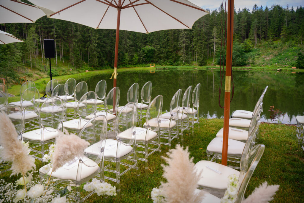 …deinem exklusiven Hochzeitsresort inmitten der Natur Kärntens. Umgeben von duftenden Wäldern und einem privaten, im Sonnenlicht funkelnden See, erwartet dich ein Ort voller Romantik, Stil und Magie – perfekt für den schönsten Tag deines Lebens.