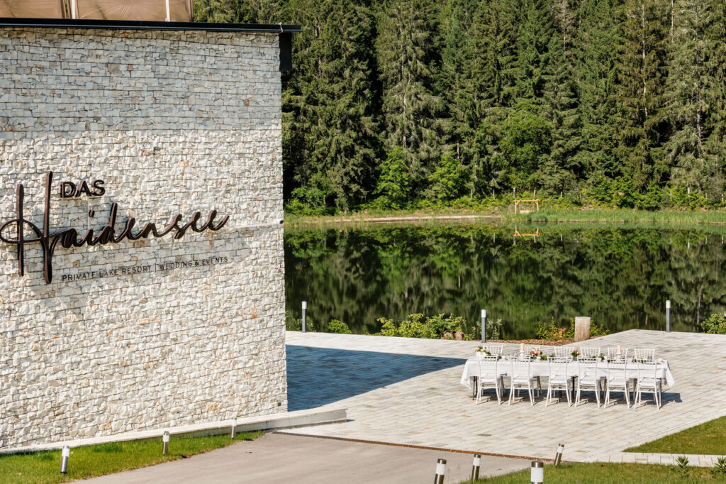 Das Haidensee ist ein exklusives Resort in Kärnten, idyllisch gelegen im Wald mit Privatsee. Der See glitzert im Sonnenlicht und spiegelt die umgebende Natur. Stilvolle Apartments, ein Chalet mit Sauna, eine Kapelle, zwei Festsäle und eine große Terrasse – perfekt für Hochzeiten.