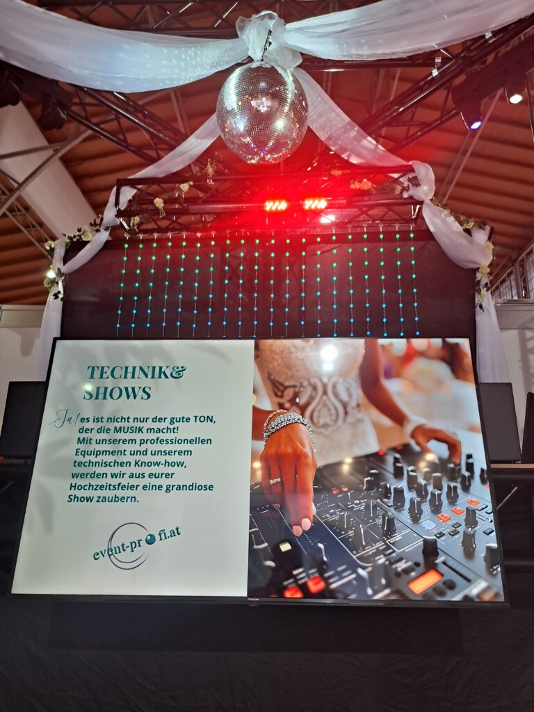 Unsere DJs bieten eine vielfältigen Musikauswahl und Sie erwartet auch eine bombastische Lichter-, und Effekte- Show, die Ihre Hochzeitsfeier unvergesslich werden lässt.